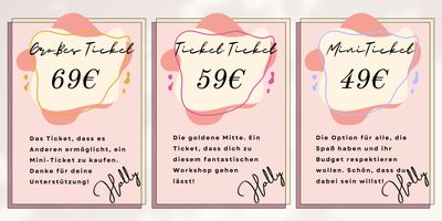 Dafür habe ich das Große und das Mini Ticket geschaffen. Das ist für mich als Unternehmerin riskant, denn ich lasse euch immer die freie Wahl. Dennoch möchte ich euch diese Option anbieten, denn ich vertraue darauf, dass ihr das nicht ausnutzt.